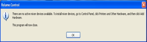 I got lot of mails regarding the Error in Widows XP "There are No Active Mixer Device Available", The problem belong to the sound service and the problem cause because the system is infected with virus so the sound service is automatic stop, it might me infect more services also like "The Network in not present or started", "Share Service also disable" so today i'm making the best thing to resolve this problem in few second, read the mention below instruction.