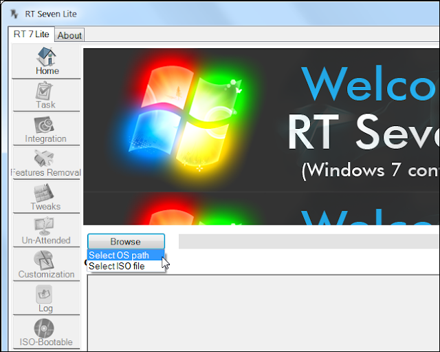 We’ll be using RT Se7en Lite for this – if you’ve used nLite with Windows XP or vLite with Windows Vista in the past, it works similarly. RT Se7en Lite is a sort of vLite or nLite for Windows 7.